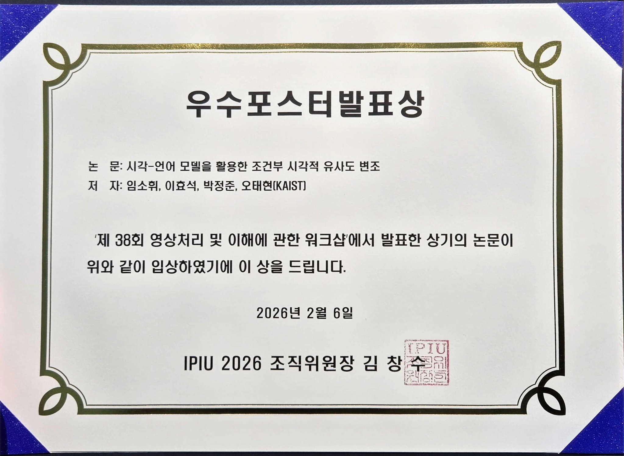 One paper from AMI lab has received outstanding poster presentation award in IPIU 2026.