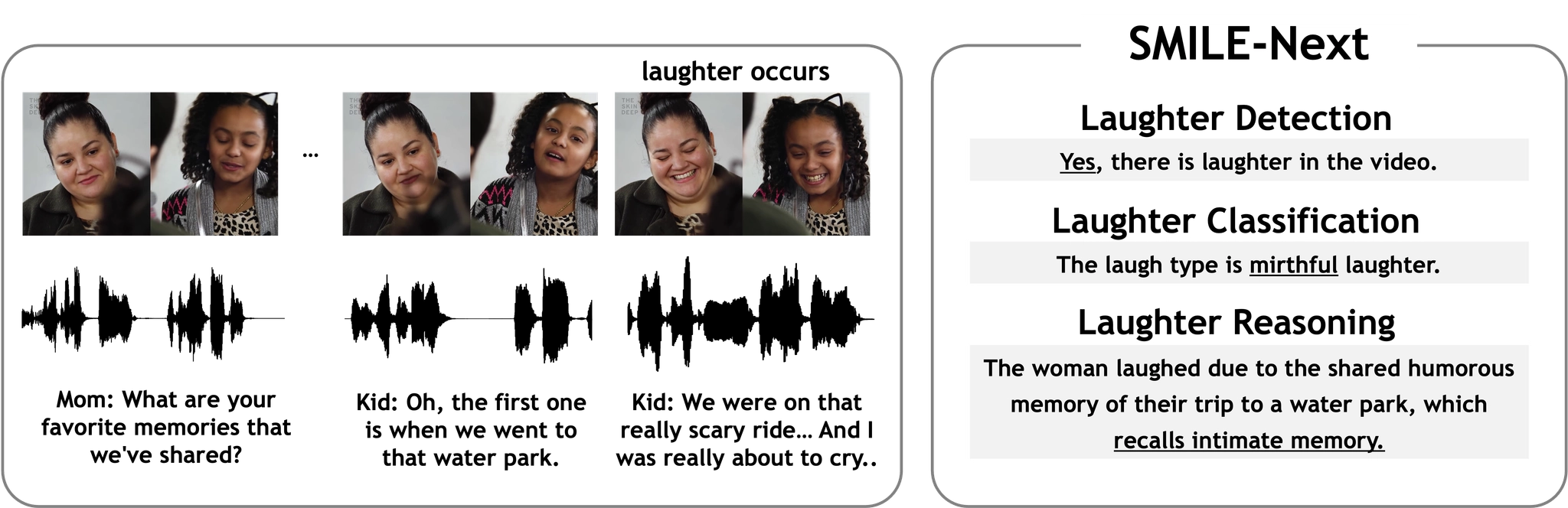 SMILE-Next: Teaching Large Language Models to Detect, Classify, and Reason about Laughter (Main, Oral)