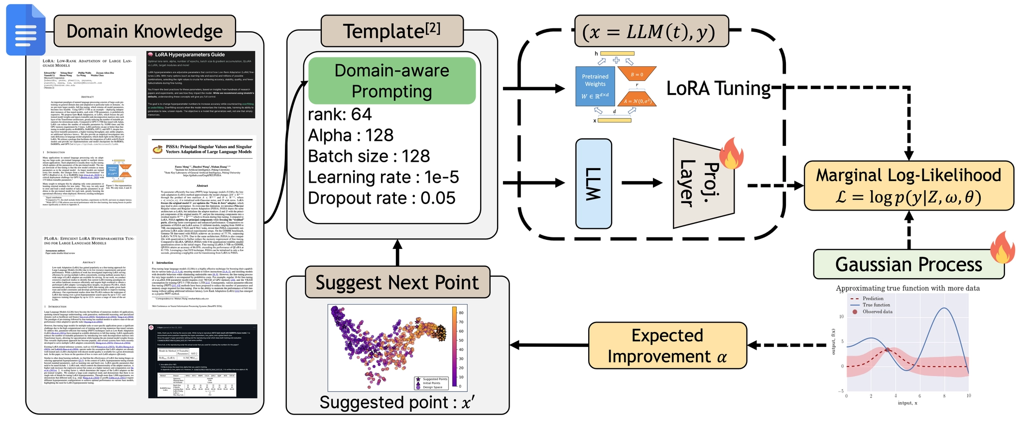 Efficient Hyper-Parameter Search for LoRA via Language-aided Bayesian Optimization